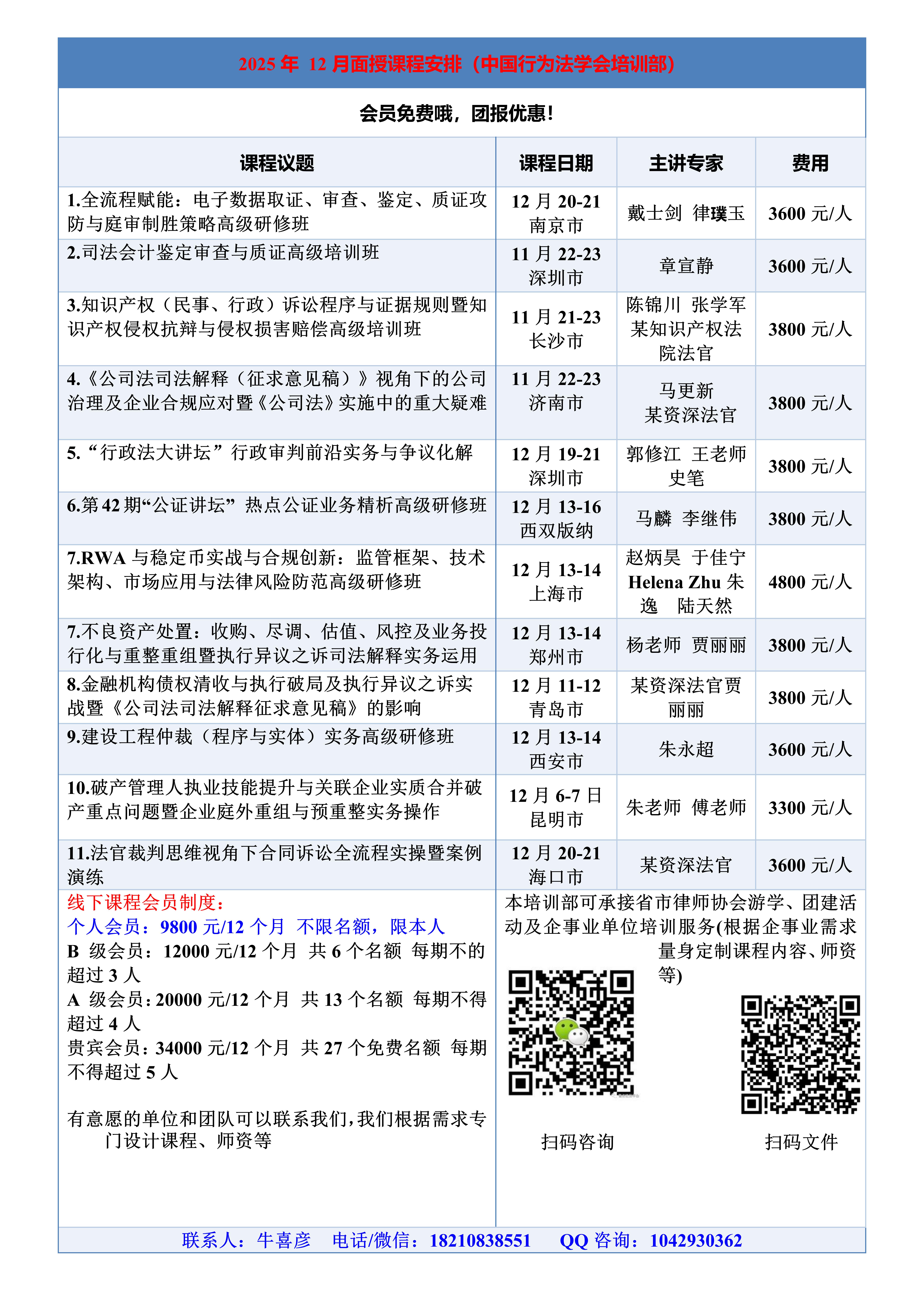 2025年12月面授课程表【上海市】RWA与稳定币实战与合规创新:监管框架、技术架构、市场应用与法律风险防范高级研修班大商务管理体系下,工程变更、索赔与反索赔实战攻防高级研修班【课程背景】 随着全球数字资产监管框架加速成型,稳定币与实物资产代币化(RWA)正重塑金融基础设施的底层逻辑。香港《稳定币条例草案》、......